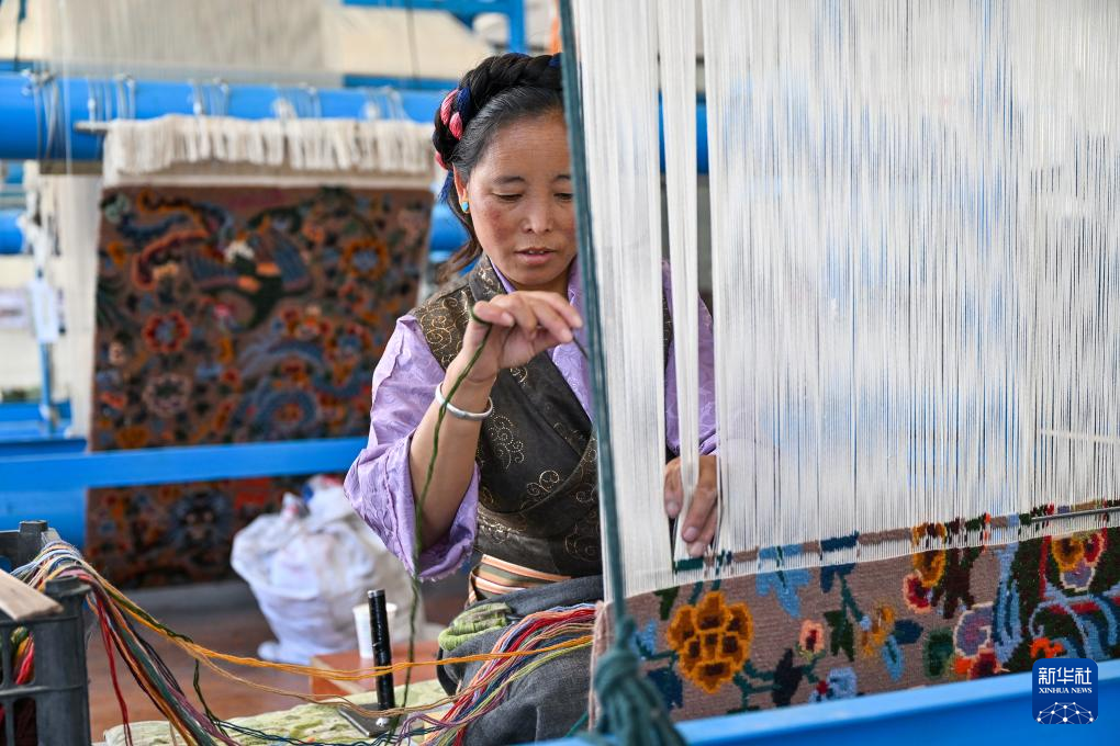 近年來,江孜藏毯不僅嚴守織造技藝中代代相傳的“魂”——穿桿式連環(huán)八字扣,又在數(shù)字制圖、生產(chǎn)工藝提升方面創(chuàng)新,使圖案產(chǎn)生光影流動的3D效果。當?shù)氐牟靥汗就ㄟ^建立合作社、開辦技能培訓(xùn)班等方式擴大靈活就業(yè)規(guī)模,讓更多人在家門口織藏毯增收,助推鄉(xiāng)村振興。