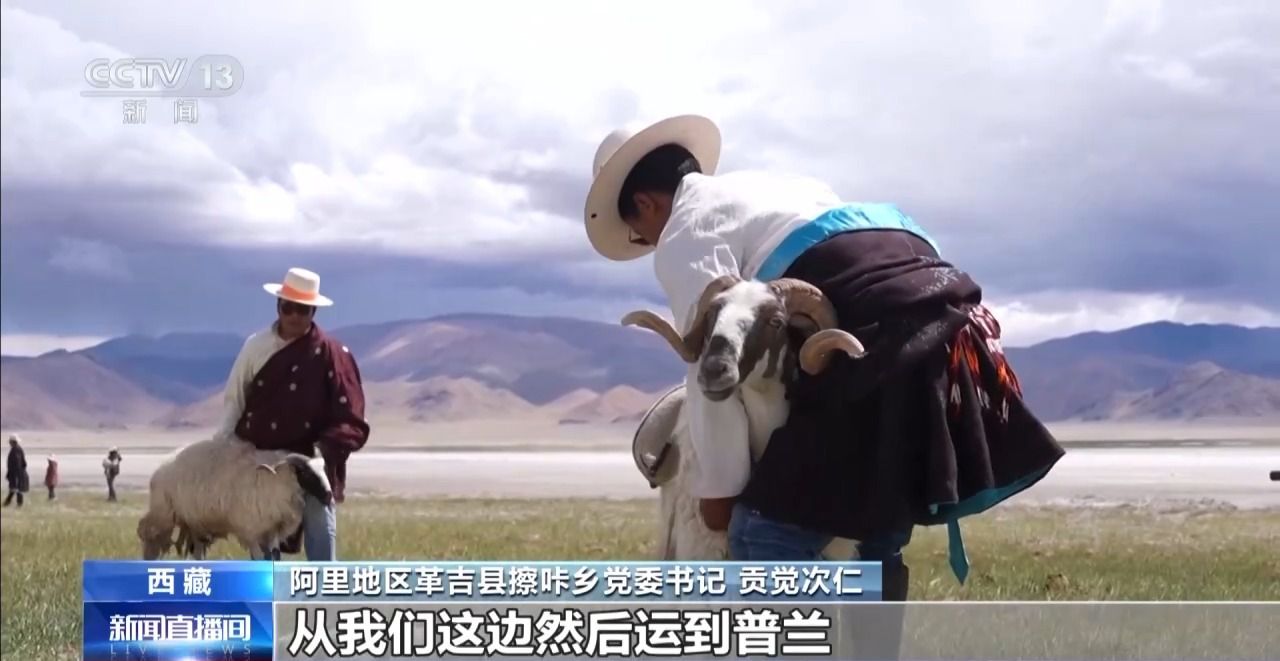 阿里地區(qū)革吉縣擦咔鄉(xiāng)黨委書記 貢覺次仁:歷史時(shí)期,我們這邊采鹽的湖稱作章倉三湖。鹽以綿羊作為交通工具,每只綿羊大概背20斤左右,從我們這邊運(yùn)到普蘭、日喀則,到印度、尼泊爾等地,以物易物的方式進(jìn)行交易。