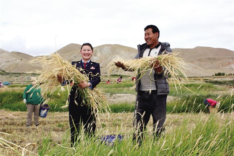 普蘭縣稅務(wù)干部走進田間地頭助力秋收。圖由自治區(qū)稅務(wù)局提供