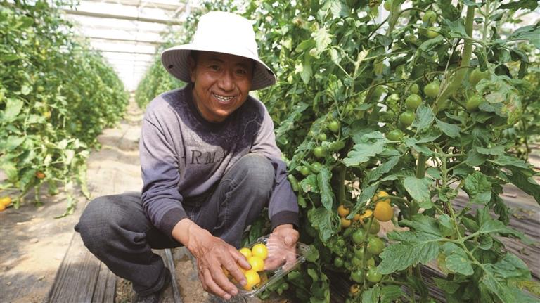 墨竹工卡縣塔巴村2組村民尼瑪正在大棚里照料四色圣女果?!霸谶@里工作每月平均能掙4200元,還能學到特色果蔬的種植技術(shù)。”他笑著說。目前,園區(qū)每天提供固定崗位13個,通過土地流轉(zhuǎn)、勞務用工等方式,已帶動周邊54戶群眾增收。近年來,墨竹工卡縣現(xiàn)代農(nóng)業(yè)產(chǎn)業(yè)園區(qū)累計向當?shù)厝罕娭Ц锻恋亓鬓D(zhuǎn)費625.33萬元,實發(fā)勞務費累計400萬元。