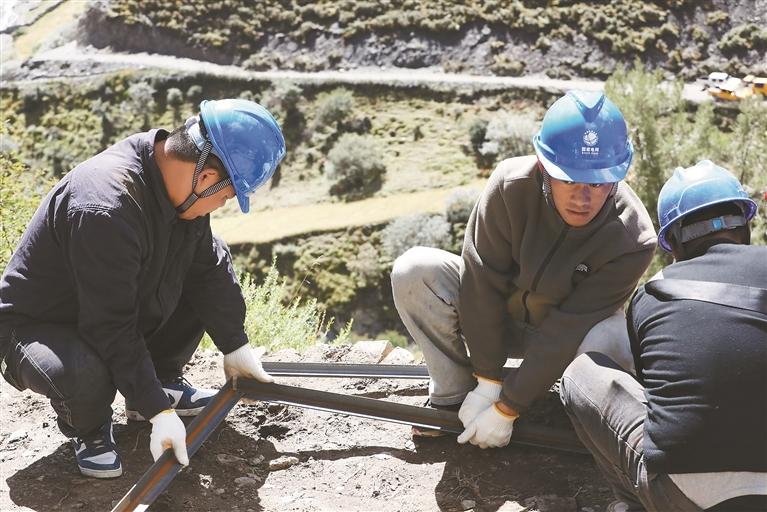 國網(wǎng)仁布縣供電公司技術(shù)人員正在施工。文/圖 記者 袁海霞 通訊員 羅布次仁
