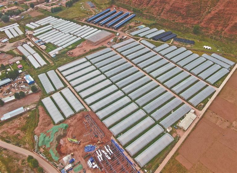 圖為貢覺(jué)縣現(xiàn)代農(nóng)業(yè)產(chǎn)業(yè)園(航拍圖)。記者 白瑪澤旺 次仁平措 攝影報(bào)道