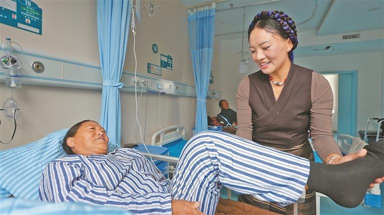 圖為南京市第一醫(yī)院關節(jié)外科專家團隊了解患者術后康復情況。記者 格桑倫珠 攝