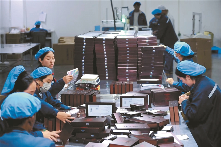 圖為在西藏昌都光宇利民藥業(yè)有限責(zé)任公司生產(chǎn)車(chē)間里,工人們?cè)诎b藥品。記者 平措朗加 溫凱 攝