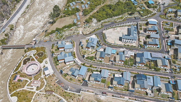圖為依偎在察隅河畔的察隅縣竹瓦根鎮(zhèn)雄久村(局部)。記者 劉楓 攝