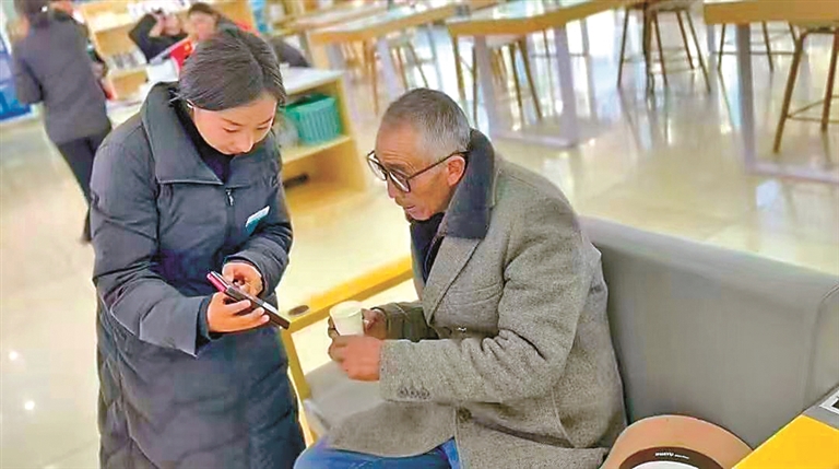 圖為中國移動(dòng)西藏公司工作人員向客戶介紹如何查詢消費(fèi)賬單。記者 李梅英 攝