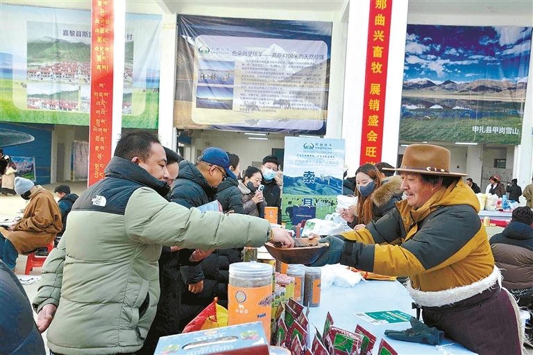 這次展銷會不僅線下熱鬧,線上也同樣火爆。為了讓各類產(chǎn)品走得更遠(yuǎn),展銷會特意搭建起“線上直播帶貨+線下現(xiàn)場選購”的雙線銷售通道,一邊是線下市民現(xiàn)場挑、現(xiàn)場買,新鮮看得見、品質(zhì)摸得著;一邊是主播對著鏡頭,向全國網(wǎng)友推介那曲好物,讓遠(yuǎn)在千里之外的消費(fèi)者也能品嘗到那曲味道。同時,展銷會還邀請電商平臺、采購商代表和參展商精準(zhǔn)對接,幫本土農(nóng)畜產(chǎn)品打通銷路,再也不愁“酒香巷子深”;積極引導(dǎo)機(jī)關(guān)、企事業(yè)單位及社會各界參與消費(fèi)幫扶,以“以購代扶”“以買促銷”的方式助力本土產(chǎn)業(yè)發(fā)展,在全市形成“人人支持本土產(chǎn)業(yè)、人人參與鄉(xiāng)村振興”的濃厚氛圍。