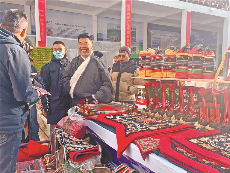 走進(jìn)展銷會現(xiàn)場,最直觀的感受就是品類全、品質(zhì)好,藏北特色撲面而來。全市11個縣(區(qū))的1485家參展商齊聚于此,帶來100余種高原特色產(chǎn)品,把草原上的好東西都搬到了消費(fèi)者面前。特色畜產(chǎn)品是當(dāng)之無愧的消費(fèi)“主力軍”,“那曲牦?!钡乩順?biāo)志產(chǎn)品、嘎爾德等區(qū)域品牌,憑借“云端牧場、黃金奶源”的獨(dú)特品質(zhì),一亮相就成了爆款,不少市民圍著展臺詢價選購。