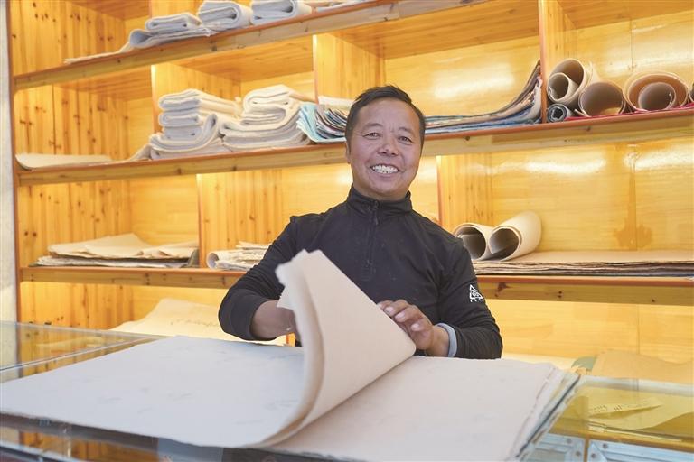相比之下,即將大學(xué)畢業(yè)的三兒子也讓他滿懷期許?!八麑Σ丶埡芨信d趣,也愿意接手,大學(xué)學(xué)歷能幫他更好地推廣這項技藝?!备裆5┰鲆呀?jīng)開始系統(tǒng)培養(yǎng)兒子,從原料采集到工藝研發(fā),從合作社管理到市場運營,一步步傾囊相授?!靶聲r代的傳承人,不能只懂手藝,還要懂市場、會創(chuàng)新,這樣藏紙才能走得更遠?!?/p>
