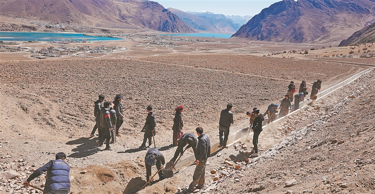 近日,記者沿149省道深入墨竹工卡縣扎雪鄉(xiāng)其朗村,遠(yuǎn)遠(yuǎn)便看到水渠沿線人頭攢動(dòng)、機(jī)械配合、干群同心,一派火熱的修渠清淤景象。村民們?nèi)硇耐度氪焊麥?zhǔn)備,以最樸實(shí)的行動(dòng)筑牢農(nóng)田水利“生命線”,為全年糧食穩(wěn)產(chǎn)增收打下堅(jiān)實(shí)基礎(chǔ)。