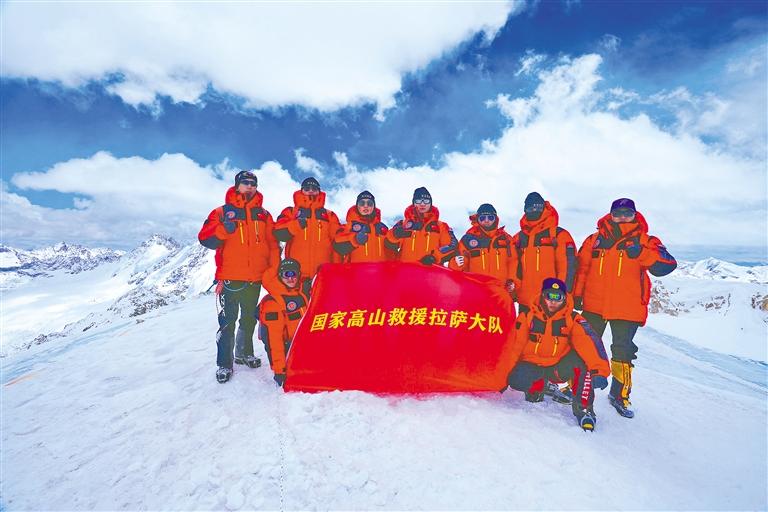 圖為國(guó)家高山救援拉薩大隊(duì)參加第二十屆中國(guó)西藏登山探險(xiǎn)活動(dòng),成功登頂海拔6010米的洛堆峰。