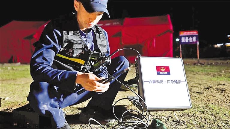 圖為拉薩市消防救援隊(duì)伍在災(zāi)區(qū)現(xiàn)場(chǎng)利用星聯(lián)衛(wèi)星便攜站為后方指揮部提供災(zāi)區(qū)一線現(xiàn)場(chǎng)信息。