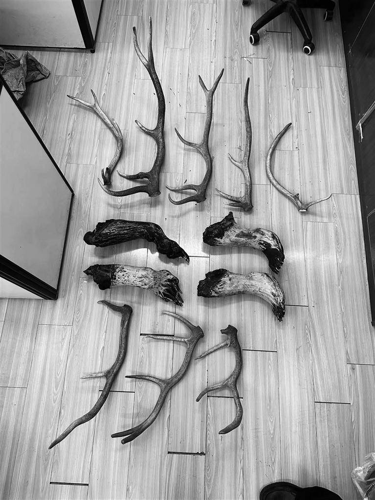 經(jīng)調(diào)查,2023年8月,加某和白某在約巴鄉(xiāng)措瑪?。ǖ孛┓拍恋臅r(shí)候,發(fā)現(xiàn)了一頭熊的尸體,隨后將熊掌等部位割下帶回。2023年9月,晏某來(lái)到約巴鄉(xiāng),和他們吃飯閑聊時(shí)得知加某家中有熊掌,之后三人達(dá)成協(xié)商,以6000元的價(jià)格賣給了晏某,錢款由加某和白某平分。2023年12月,玉某和平某在放牧的時(shí)候撿到了8根自然脫落的鹿角,隨后將鹿角帶回家中。晏某得知后,以每斤100元錢的價(jià)格將其買下并帶回昌都。目前案件正在進(jìn)一步偵辦中。