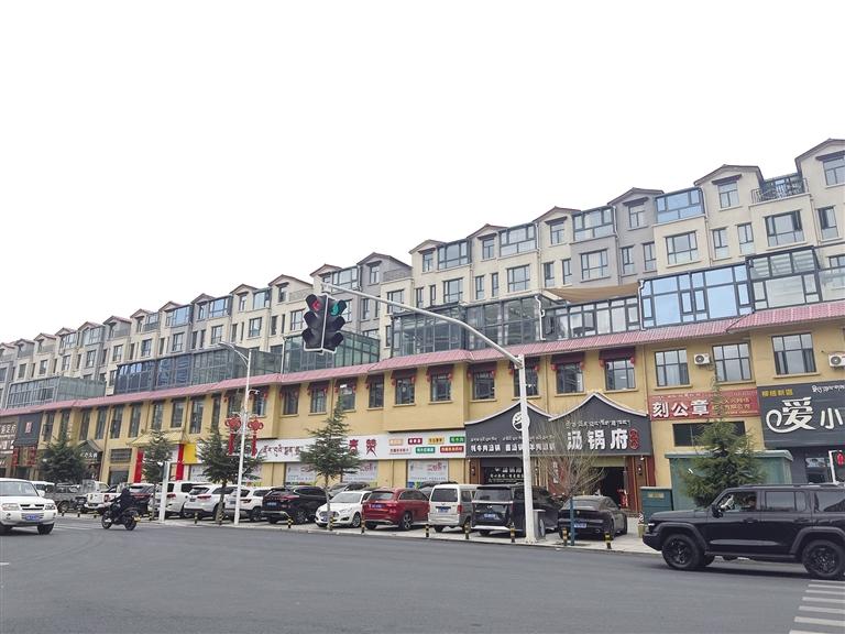 小區(qū)外的馬路上紅綠燈正常,但臨街商鋪均處于停電狀態(tài)。