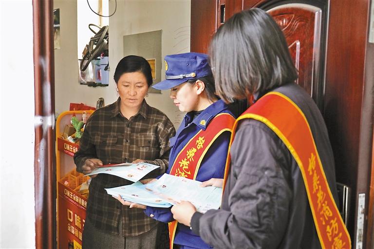圖為阿里地區(qū)“格?;ㄏ佬麄麝?duì)”進(jìn)村入戶向群眾科普電動(dòng)自行車消防安全知識(shí)。