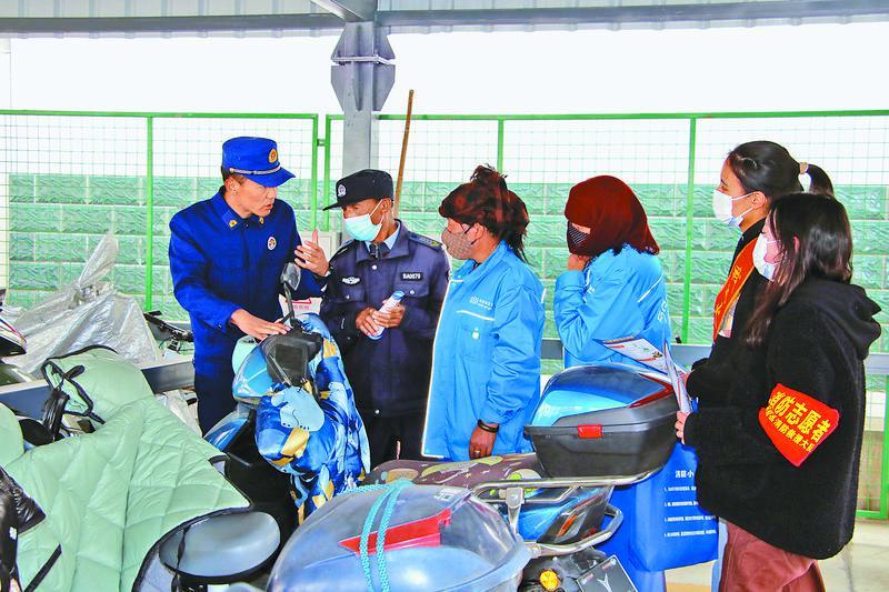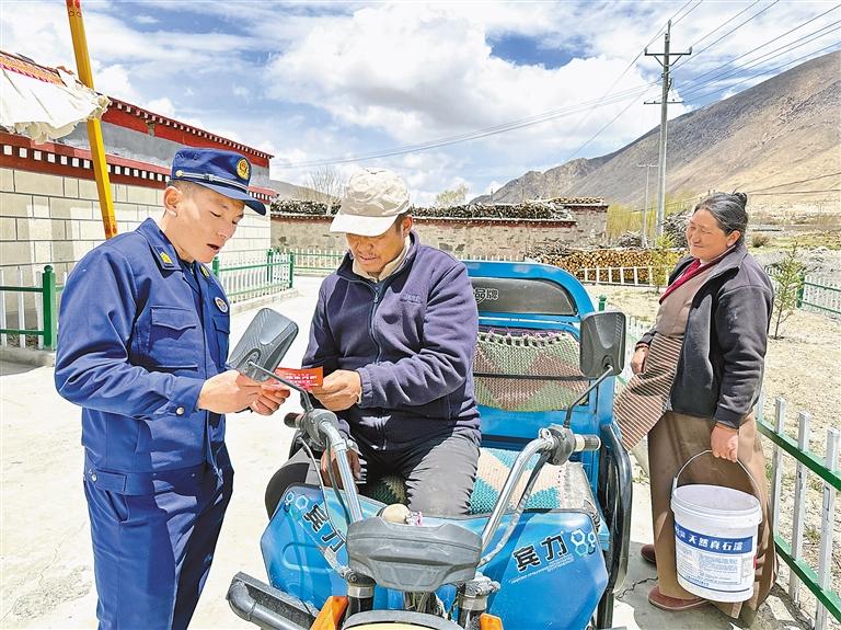 圖為洛扎縣消防救援大隊(duì)宣傳員在農(nóng)牧區(qū)開展電動(dòng)自行車消防安全宣傳。