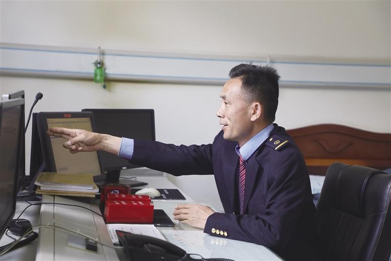 “這里的工作雖然看似單調(diào),實則責任很大?!辟R文貴身穿深藍色的鐵路制服,胸前佩戴著亮閃閃的工牌,顯得精神抖擻。他像一名嚴謹?shù)膽?zhàn)士,緊盯著操作臺,確認信號,口呼手指。 作為車站值班員,賀文貴每天的任務(wù)主要是監(jiān)視列車進路和區(qū)間動態(tài),保證行車安全。工作中的他認真負責,嚴格執(zhí)行標準化作業(yè),他常說:即使單人值守,該有的程序、作業(yè)步驟一項都不少,作業(yè)標準必須嚴格執(zhí)行,保證作業(yè)安全。