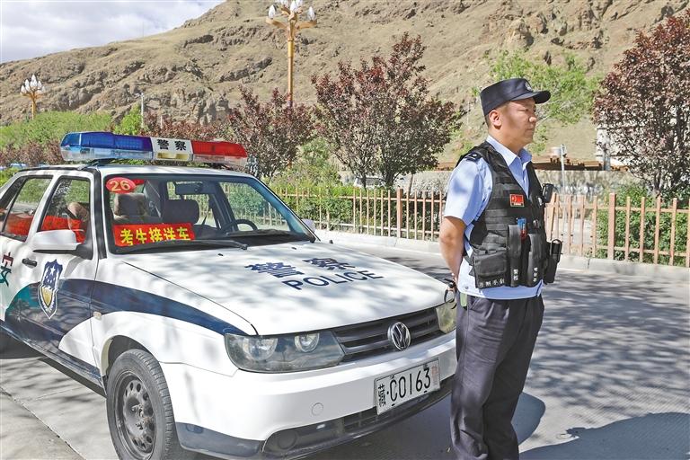 圖為日喀則市公安交警在考場外執(zhí)勤,為考生營造安靜有序的考試環(huán)境。 本報記者 彭琦 攝