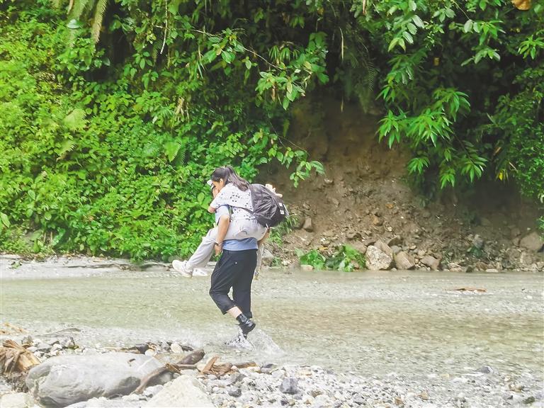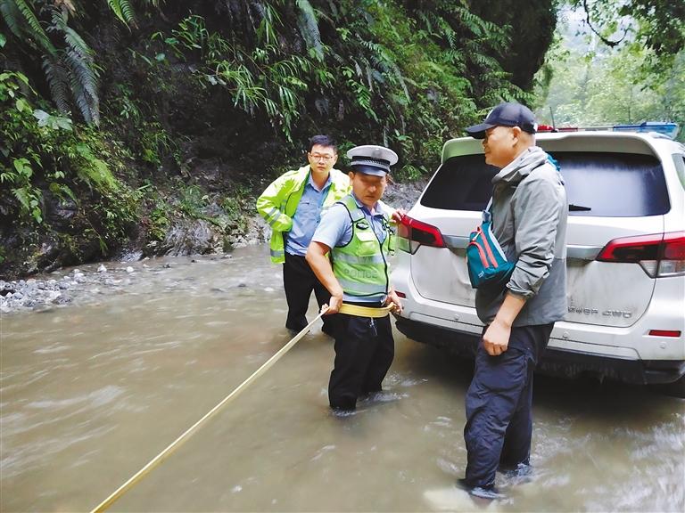 執(zhí)勤交警全身被雨水浸透,卻仍堅(jiān)守在現(xiàn)場,耐心疏導(dǎo)交通的同時(shí)還時(shí)刻關(guān)注著每一位需要幫助的路人,他們齊心協(xié)力逐車逐人幫助過往車輛脫困。“我背你過去吧,上來!”他們毫不猶豫地蹲下身子,趟水將行動(dòng)不便的群眾背過積水路段……大風(fēng)大雨中,墨脫公安交警秒變“推車俠”,化身風(fēng)雨“守路人”,保障群眾安全通行。