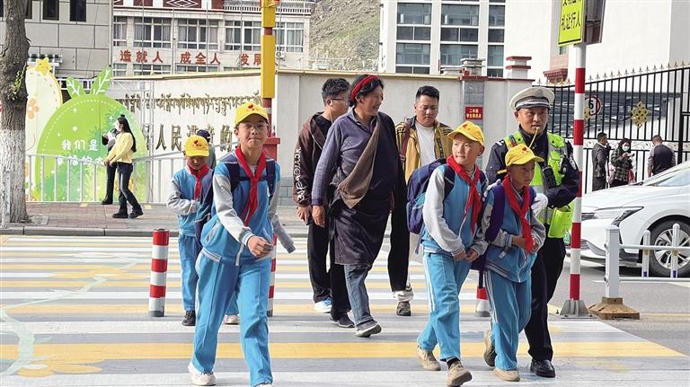 此外,拉薩交警還利用每日“護學崗”時間,主動引導學生正確過馬路、認識交通信號燈,提醒學生不在馬路上嬉戲、追逐打鬧,不乘坐三輪摩托車等不規(guī)范車輛,并向接送學生的家長講解接送孩子途中應注意的安全事項,告誡學生家長以身作則,杜絕橫穿馬路、闖紅燈等交通陋習,共同營造安全、暢通、文明和諧的道路交通環(huán)境?!拔覀児膭詈⒆觽儗W到的交通安全知識帶回家,充分發(fā)揮‘小手拉大手’作用,向家人宣傳道路交通安全知識,強化家長、學生安全意識和自我保護意識?!瘪R定雄說。