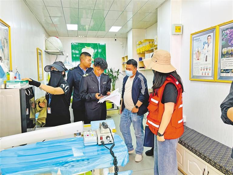 近日,沖賽康社區(qū)依托社區(qū)網(wǎng)格化管理優(yōu)勢,對轄區(qū)內(nèi)牙科診所進行了全面的摸底排查,重點核查了牙科診所是否具備合法經(jīng)營資質(zhì)、診所備案憑證、從業(yè)人員是否持有有效執(zhí)業(yè)證書等關鍵信息。 對于發(fā)現(xiàn)的問題,社區(qū)上報并協(xié)助執(zhí)法人員進行現(xiàn)場查處,依法依規(guī)進行查封取締。執(zhí)法人員深入牙科診所,逐一檢查其營業(yè)資質(zhì)、醫(yī)務人員執(zhí)業(yè)資格、醫(yī)療設備和衛(wèi)生條件等。在檢查中,發(fā)現(xiàn)23家牙科診所未辦理診所備案憑證等相關證件,并對23家無證牙科診所下發(fā)《衛(wèi)生行政執(zhí)法文書》進行停業(yè)整頓。 圖為執(zhí)法人員在牙科診所檢查。 記者 央金 攝