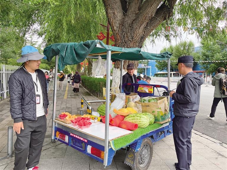 “我們從每日早上10點至晚上11點,對布達拉宮南門、宗角祿康東門采取值班執(zhí)勤等方式進行不間斷盯守,同時加強城管執(zhí)法大隊日常路段巡查力度,進一步鞏固整治工作成效,提高監(jiān)管效率,形成規(guī)范化和長效化的城市管理機制,共創(chuàng)文明有序的市容環(huán)境?!辈歼_拉宮周邊亂象專項整治工作專班成員常春告訴記者。