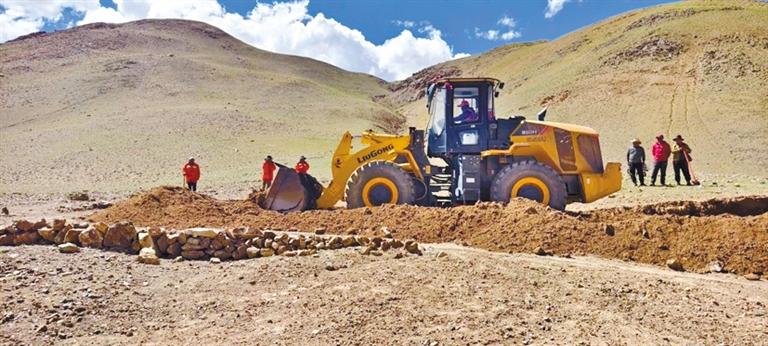駐措勤縣達雄鄉(xiāng)才扎村工作隊為群眾維修秋季轉(zhuǎn)場道路。 記者 永青 通訊員 旦增尼瑪 王飛洋 攝