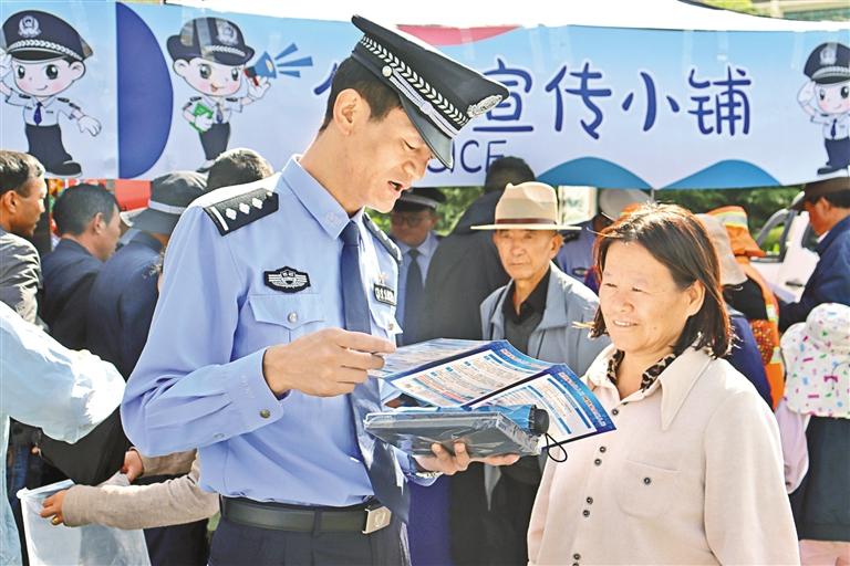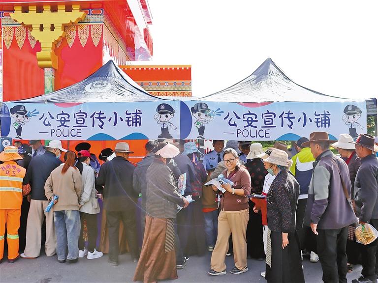 山南市公安局“公安宣傳小鋪”為過往群眾開展安全防范知識(shí)宣傳。記者 武沛濤 攝