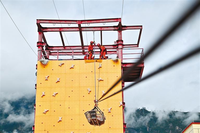 開展斜向救援技術(shù)訓(xùn)練。本報(bào)通訊員 西繞拉翁 記者 謝筱純 王珊 攝