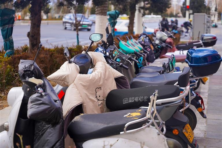氣溫逐漸變冷,人們出行時(shí)紛紛全副武裝。不少騎電動(dòng)車出行的市民選擇為愛車加裝“御寒神器”。在拉薩街頭,不少電動(dòng)車都安裝了擋風(fēng)被,其顏色、造型、款式各異,其中護(hù)膝型、套把型擋風(fēng)被尤為常見。
