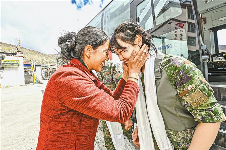 圖為村民送別珠峰文藝輕騎隊(duì)時(shí),為他們送上哈達(dá)。 西藏日?qǐng)?bào)記者 楊子彥 西藏日?qǐng)?bào)通訊員 何曙 劉煜欽 攝