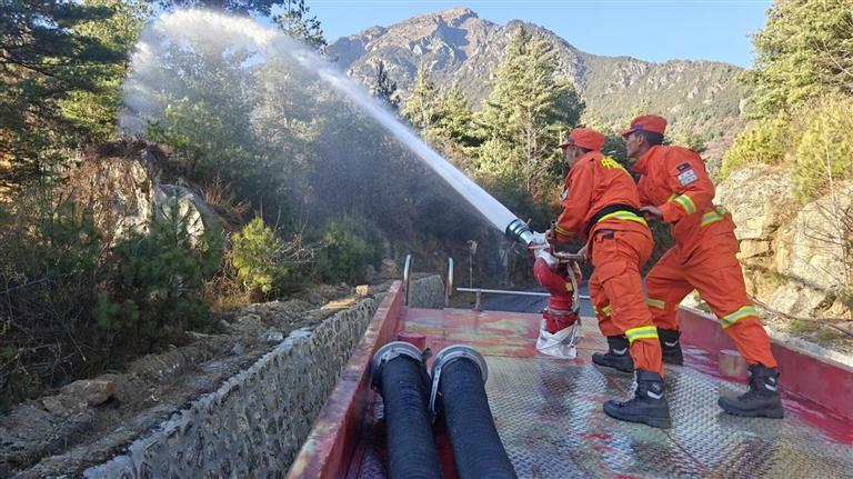 日喀則森林消防與相關(guān)部門開展聯(lián)合演練。