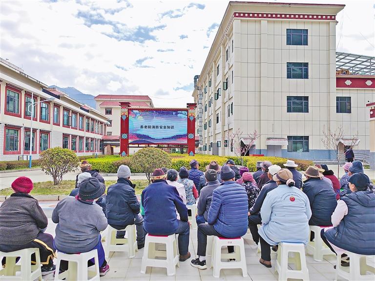 林芝市巴宜區(qū)消防救援大隊(duì)宣傳人員走進(jìn)養(yǎng)老機(jī)構(gòu)開展消防安全宣傳。 本報(bào)通訊員 才旺多吉 攝