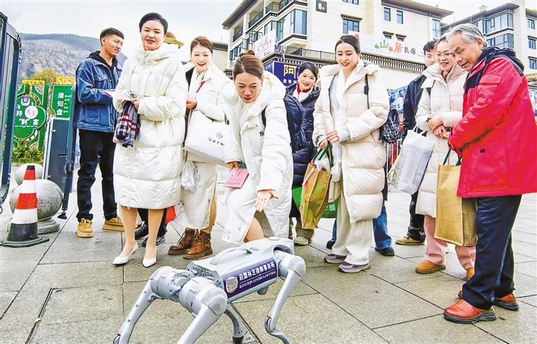據(jù)了解,林芝市啟用銀灰色人工智能機器狗GO2作為移動普法載體,搭載自主巡航、動態(tài)避障等6項智能功能,在工布天街商圈開展全天候動態(tài)巡游。機器狗背部印制民法典專題二維碼矩陣,同步連接“法治林芝”抖音號、“林芝司法為民”微信公眾號、林芝掌上12348平臺等4個線上端口,實現(xiàn)群眾學(xué)法“碼上達”,迅速觸及案例解析、法律問答、維權(quán)指引等9類服務(wù)模塊。