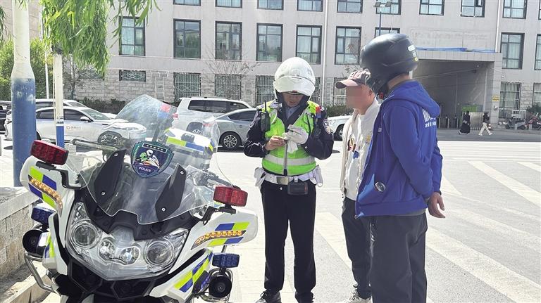 4月22日下午,記者來到拉薩市江蘇東路與嘎瑪貢桑路交叉路口,此時車來車往,道路交通十分繁忙,拉薩市公安局交警支隊的民警們正在路口疏導交通,并提醒過往電動車駕駛員佩戴好安全頭盔。行動中,一輛摩托車迎面而來,由于乘客未佩戴安全頭盔被執(zhí)勤民警攔下,民警耐心地講解了佩戴安全頭盔的重要性以及不佩戴安全頭盔可能帶來的危害,并依法對其進行了處罰。“以后騎摩托車出行,我們一定會佩戴好安全頭盔,遵守交通規(guī)則,確保自身安全。”摩托車駕駛員李某說。