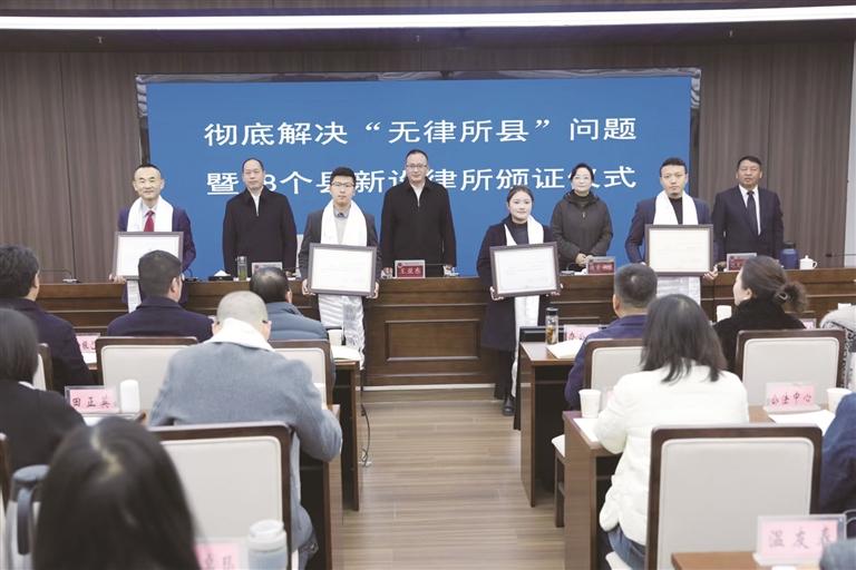 12月1日,西藏自治區(qū)司法廳舉行全區(qū)最后18個“無律所縣”新設(shè)律師事務(wù)所集中頒證儀式。這標(biāo)志著西藏自治區(qū)徹底消除了“無律所縣”,實現(xiàn)了律師事務(wù)所在全區(qū)74個縣域的全覆蓋。