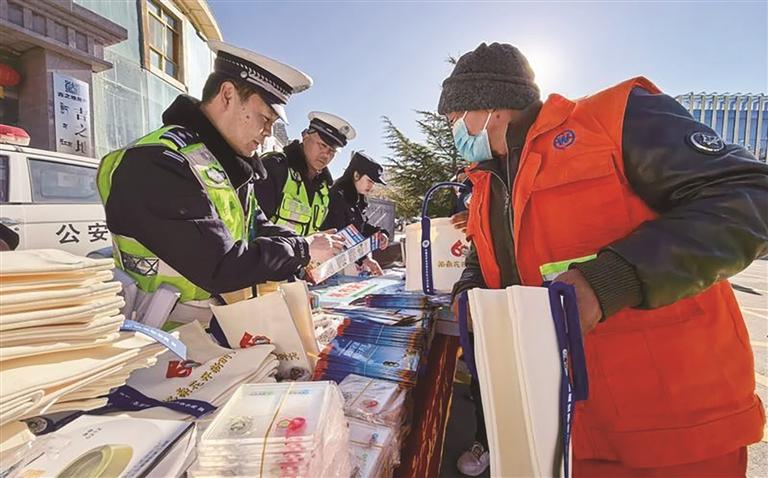 “您好,請(qǐng)看看這份資料,騎電動(dòng)車(chē)一定要佩戴好安全頭盔。”“師傅,冬季路面易滑,行車(chē)請(qǐng)保持安全距離?!痹诶_經(jīng)濟(jì)技術(shù)開(kāi)發(fā)區(qū)陽(yáng)光新城小區(qū)附近,經(jīng)開(kāi)區(qū)交警大隊(duì)的民警們正忙碌地布置宣傳展臺(tái),印有藏漢雙語(yǔ)的宣傳折頁(yè)、實(shí)用又貼心的交通安全提示小禮品、交通安全模擬體驗(yàn)……吸引了不少過(guò)往市民駐足觀看。民警們一邊發(fā)放宣傳資料,一邊耐心細(xì)致地講解交通安全知識(shí),邀請(qǐng)市民佩戴酒駕模擬眼鏡嘗試行走,直觀感受酒后駕駛的眩暈感,了解酒駕的危害。美團(tuán)外賣(mài)騎手趙海龍告訴記者:“我們天天在路上跑,安全才是最快的配送速度。以后我不僅自己會(huì)遵守交通規(guī)則,還會(huì)提醒身邊的同行,自覺(jué)遵守道路交通法律法規(guī),做到安全文明出行?!?/p>