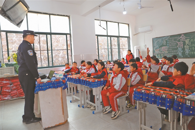 林芝邊境管理支隊(duì)格當(dāng)邊境派出所民警為格當(dāng)鄉(xiāng)小學(xué)學(xué)生上普法課。記者 彭琦 通訊員 陳熙涵 攝影報(bào)道