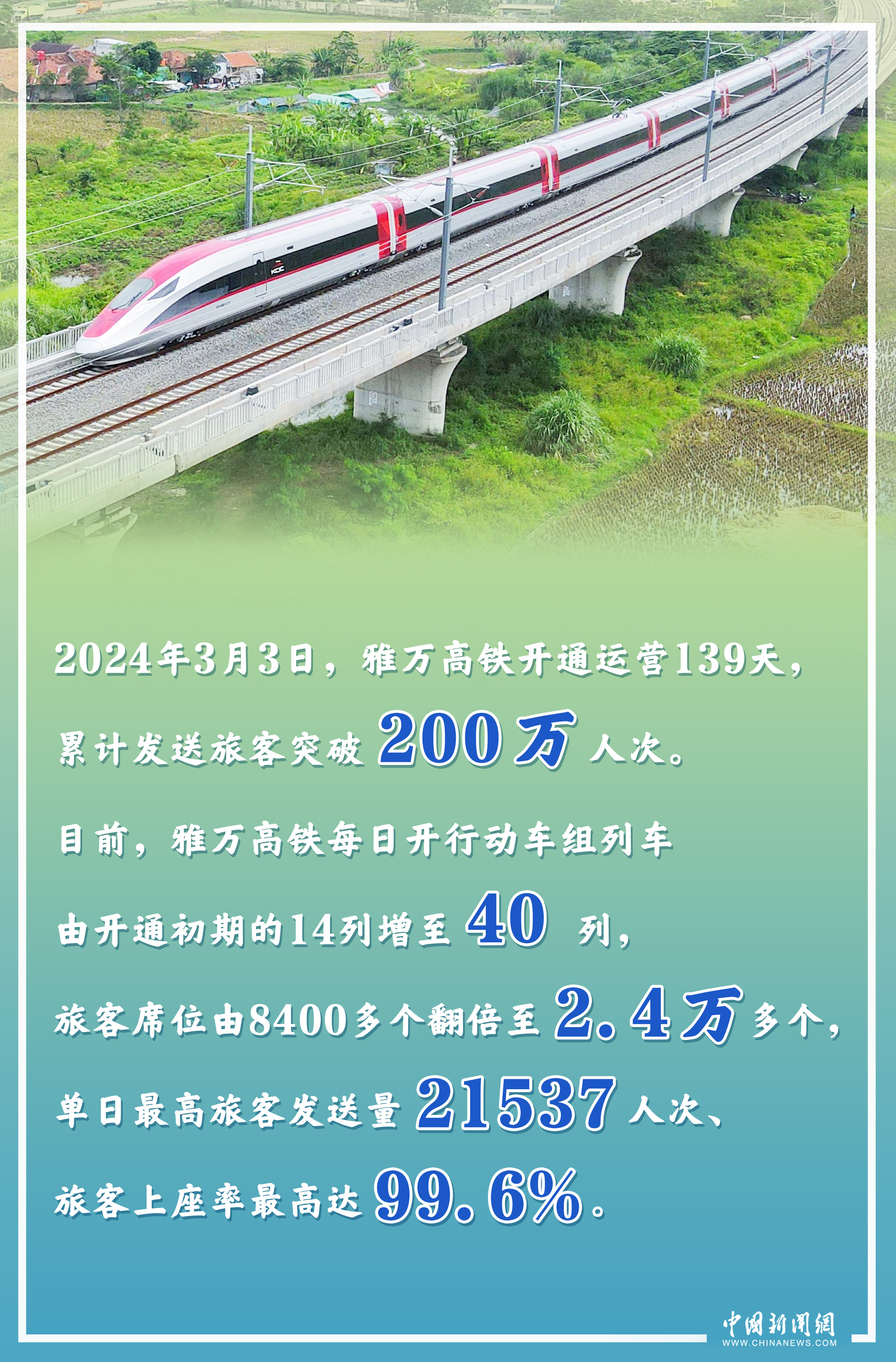 作為中國與印尼共建“一帶一路”的“金字招牌”,截至當(dāng)?shù)貢r間2024年3月3日,印尼雅萬高鐵累計發(fā)送旅客突破200萬人次,單日旅客上座率最高達(dá)99.6%,客流持續(xù)保持高位態(tài)勢。