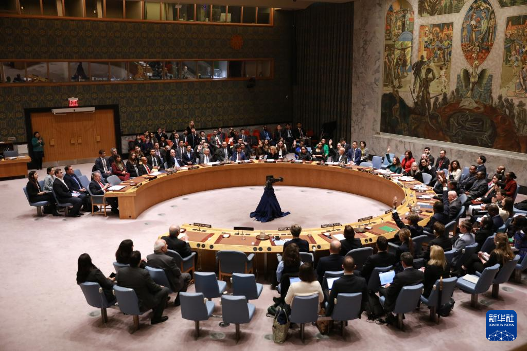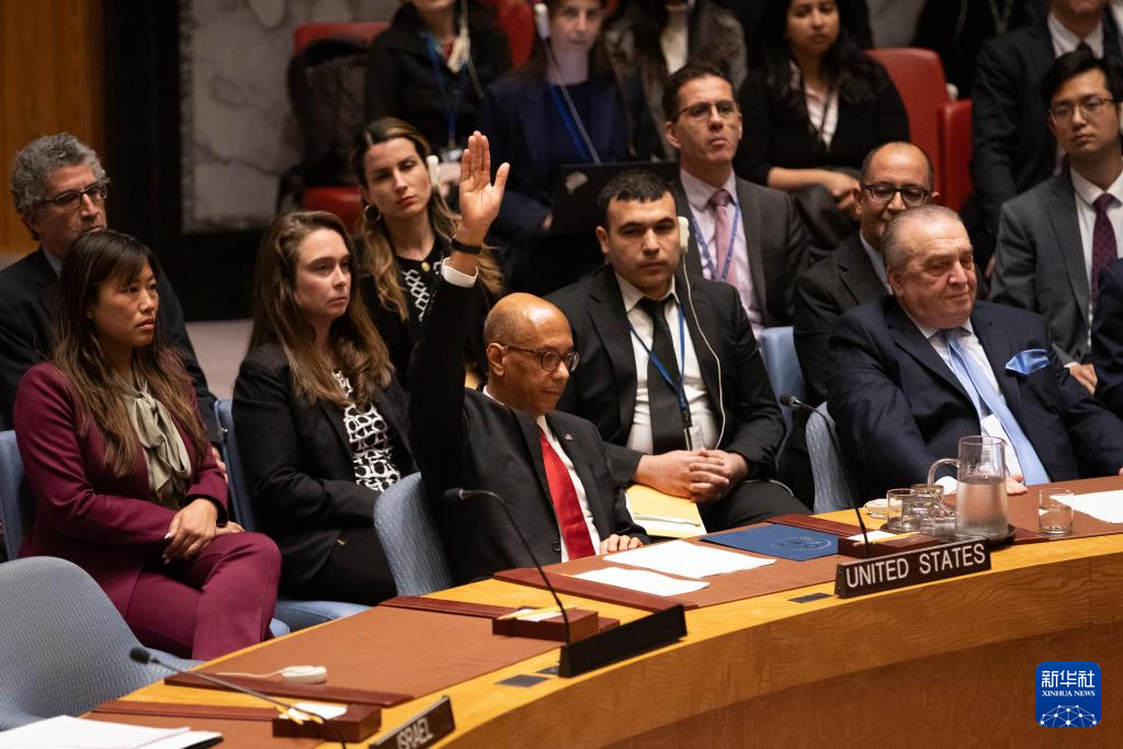 4月18日,在位于紐約的聯(lián)合國總部,美國常駐聯(lián)合國副代表羅伯特·伍德(前左)在安理會就決議草案進(jìn)行表決時投反對票。新華社記者 謝鍔 攝