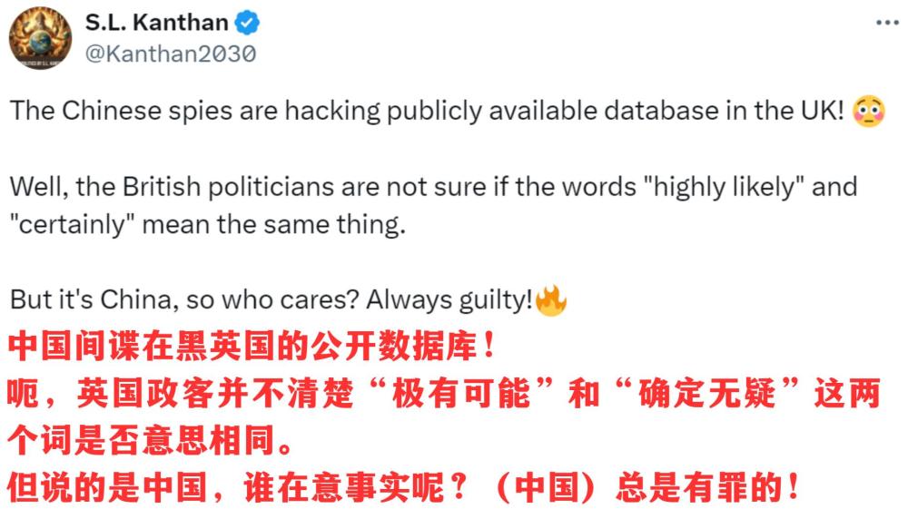 如今,“中國=網(wǎng)絡(luò)黑手”似乎成了某些西方政客用來解釋一切負面事件的萬能答案。凱特王妃被網(wǎng)友“黑”過頭?怪中國去。一艘由丹麥公司租用、懸掛新加坡國旗、前往斯里蘭卡的船撞上美國橋?還是怪中國去。