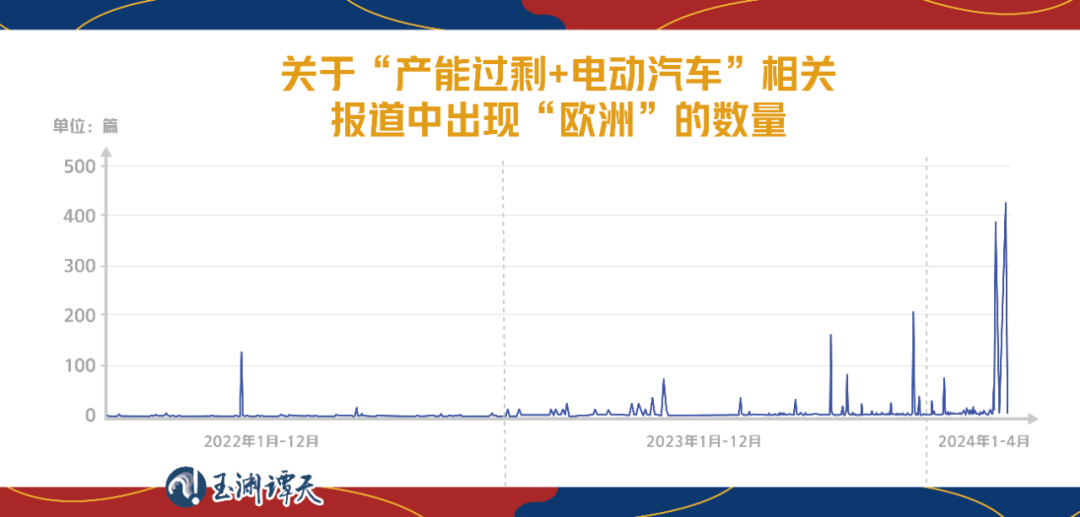 為了拆解美方的敘事套路,我們又定向?qū)λ^中國(guó)“產(chǎn)能過(guò)剩論”的報(bào)道中有關(guān)“新能源汽車”報(bào)道的趨勢(shì)變化進(jìn)行了分析。
