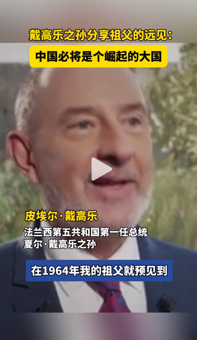 戴高樂之孫分享祖父對中國發(fā)展的遠見:必將崛起的大國