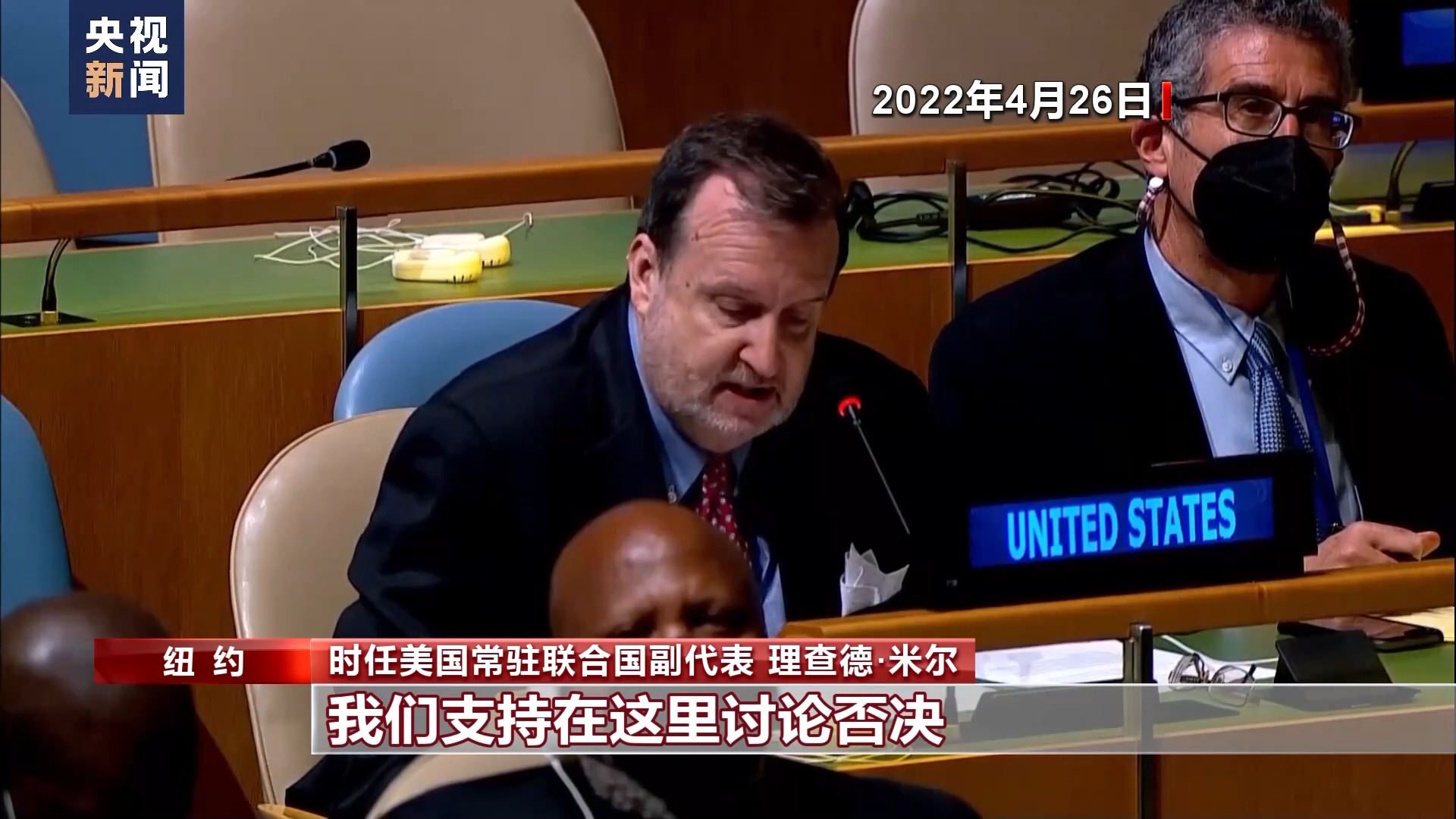 時任美國常駐聯(lián)合國副代表 理查德·米爾:如果大會因為相同議題已經(jīng)召開了緊急特別會議,就不再舉行否決解釋會議。不管聯(lián)合國大會是否召開了緊急特別會議還是別的會議,我們支持在這里討論否決,如果美國投了否決票,我們樂于參與。
