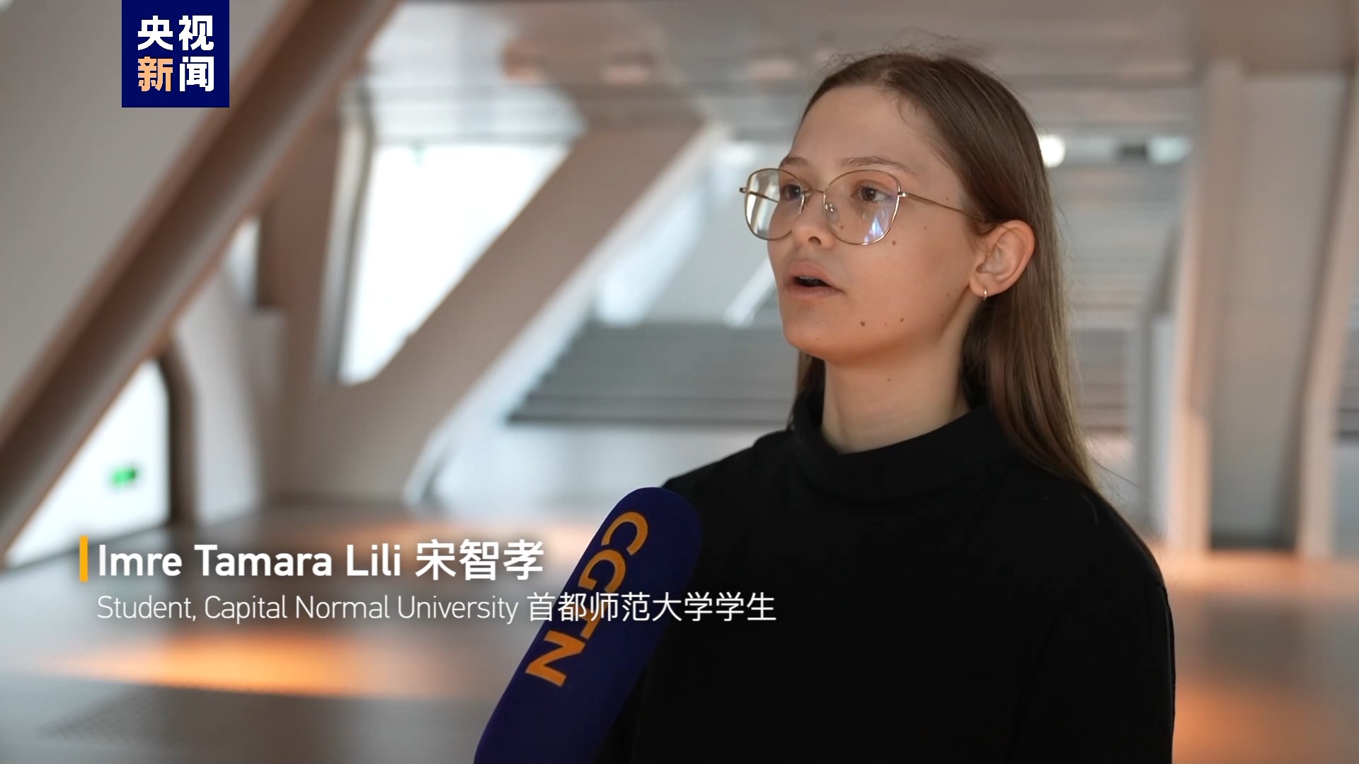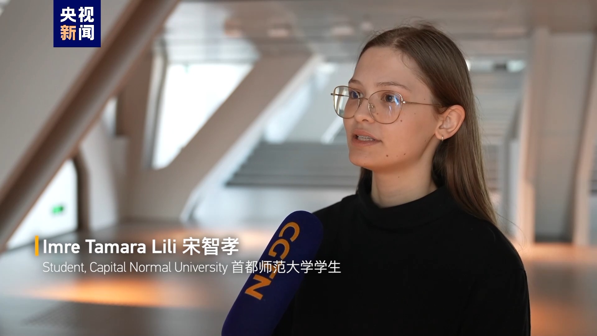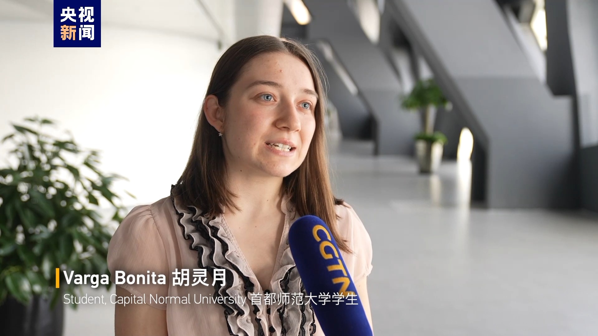 首都師范大學學生 瓦爾加·博尼塔 (又名 胡靈月):(這是)我和宋智孝第二次獲得大使獎學金。 我們對此感到非常高興和興奮。 我們想分享我們的喜悅。所以,我們給習近平主席寫了一封信。