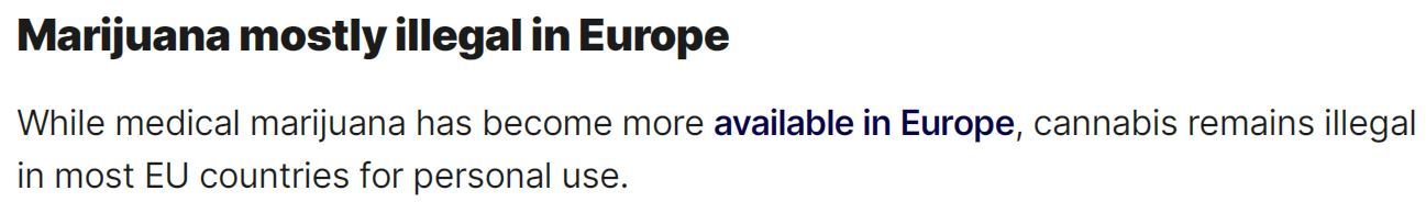 即使在毒品問(wèn)題同樣嚴(yán)峻的歐洲,雖然醫(yī)用大麻越來(lái)越容易獲得,但在大多數(shù)歐盟國(guó)家,個(gè)人吸食大麻仍是非法行為。