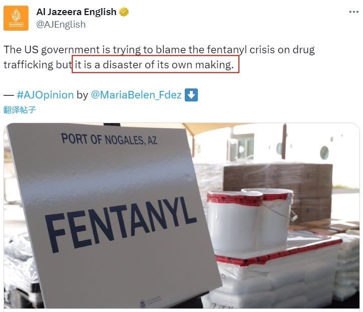 對(duì)此,有媒體指出,美國(guó)總是習(xí)慣將本國(guó)毒品問(wèn)題甩鍋給別人,但實(shí)際上“這是一場(chǎng)美國(guó)自己制造的災(zāi)難”。