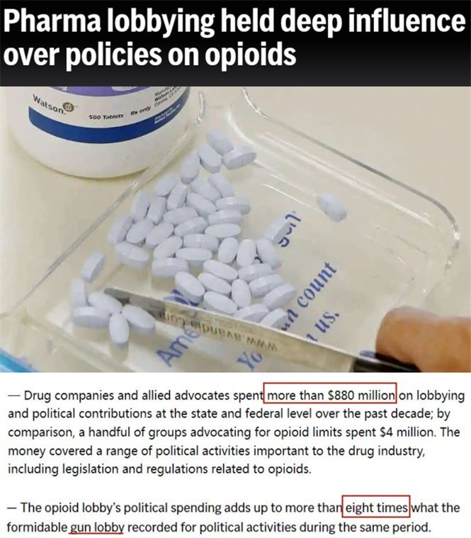 據(jù)美媒披露,為了阻止藥劑師更謹(jǐn)慎地開(kāi)具處方、推動(dòng)藥房快速售藥,阿片類(lèi)藥物制造商和經(jīng)銷(xiāo)商在近十年內(nèi)共花費(fèi)了8.8億美元用于“打通關(guān)系”,比美國(guó)槍支游說(shuō)集團(tuán)花的錢(qián)還要高8倍。