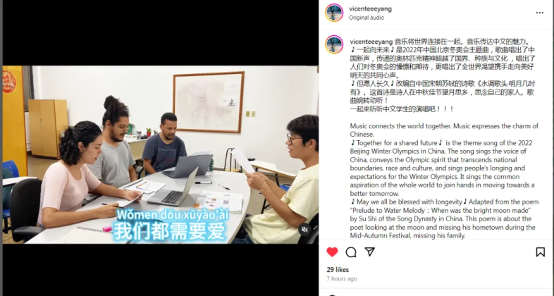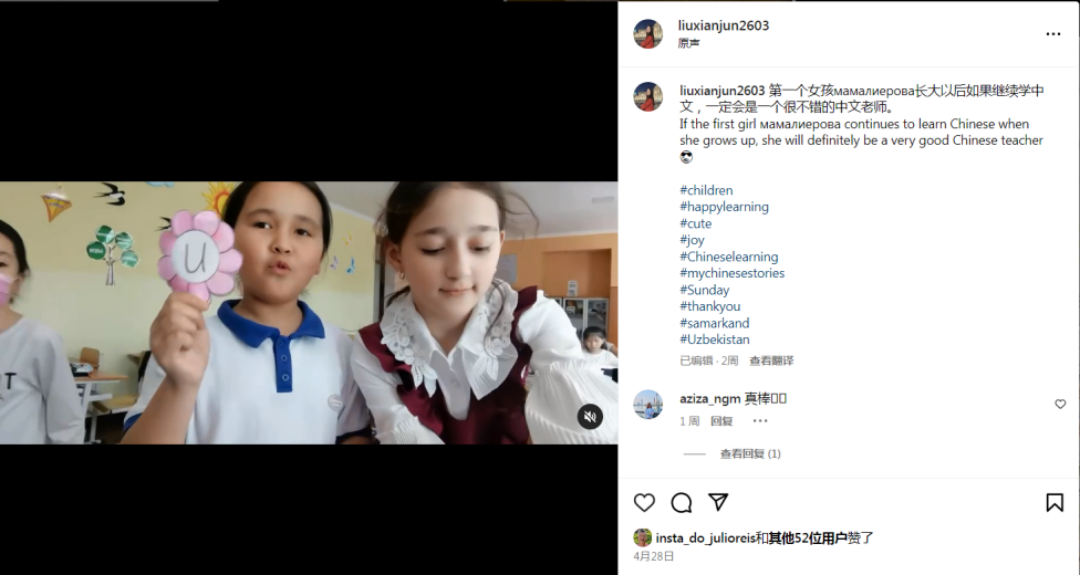 來自老撾的楊世群、菲律賓的黃玉潔、布隆迪的田曉慧和墨西哥的楊衍輝等老師,還分享了各種學習中文的有趣方法,例如情景演繹、唱歌學中文、跟讀練習,獲得了網(wǎng)友們的一致好評。