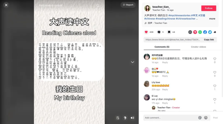 同時,眾多海外外籍博主也積極參與活動,分享他們與中文的美好緣分。美國博主Kyle Strickland通過情景演繹的形式分享學習中文的獨特方法,印度尼西亞籍中文老師Angelica的趣味中文小課堂更是收獲無數(shù)“催更”。